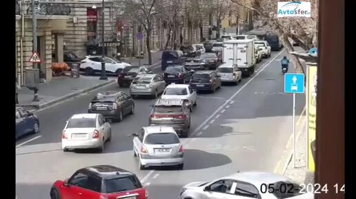 В Баку водитель Prius, желая объехать пробку, грубо нарушил ПДД