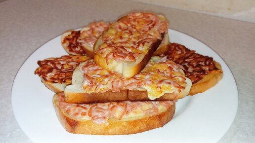 Горячие бутерброды с колбасой и сыром на сковороде.