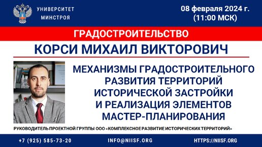 ВИДЕО. Корси М.В. Формирование эффективных механизмов град. развития территорий исторической застройки и реализация элементов МП