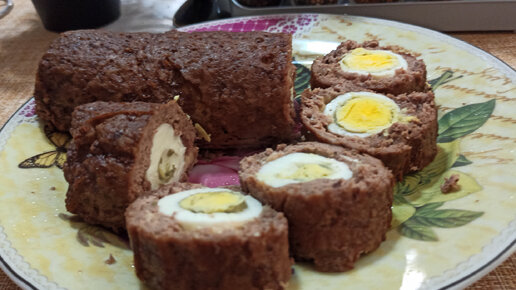 Мясной рулет с яйцом (бычий глаз).