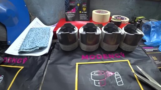 _MODENGY_ антифрикционное покрытие ,наносим на поршни ОМ 615 .