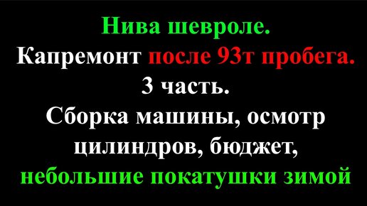 Нива шевроле. Капремонт после 93т пробега. 3 часть. Сборка, осмотр цилиндров, бюджет, покатушки.