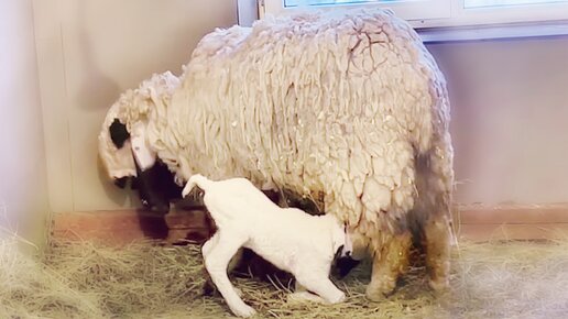 Мать овца БЬЕТ малыша копытом ! Ягненок пытается пить молоко. Тайган