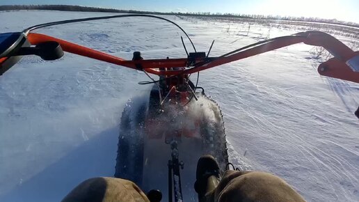 Ура! Чехол на мотоблок не позволил обмёрзнуть воздушному фильтру АГАТа! Проехал более 2-х км после сильного снегопада по полю и пухляку.