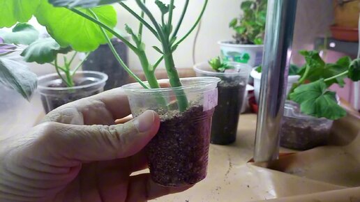 Формирую пеларгонию обрезкой, заодно укореняю черенки