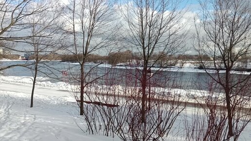 Приятный февральский день в парке "Коломенское". Панорама и набережная реки Москвы.