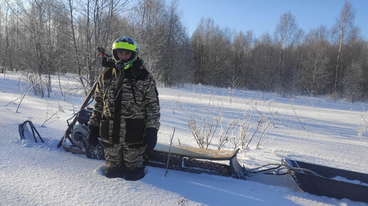 Снегокат с двигателем Lifan покатушки в мороз с санями
