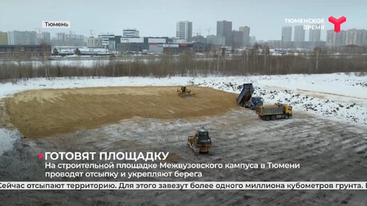На строительной площадке Межвузовского кампуса в Тюмени проводят отсыпку и укрепляют берега