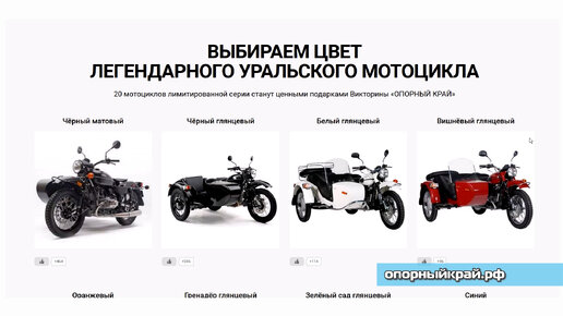 Гренадёр или Пендлетон? Выбирайте цвет подарочных мотоциклов для участников викторины «Опорный край»