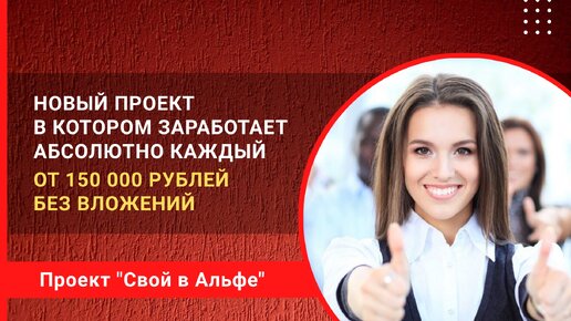 Свой в Альфе - проект в котором заработает каждый: от 150 000 рублей в первый месяц, без вложений