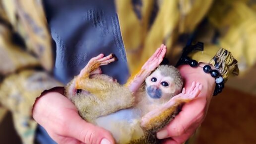 Ксюша делает массаж БРОШЕННОЙ МАМОЙ маленькой обезьянке Эльфику!