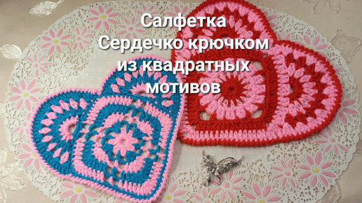 Легким движением руки квадратный мотив превращается в оригинальную салфетку сердечко