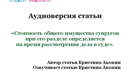 Стоимость общего имущества супругов при его разделе определяется на время рассмотрения дела в суде.