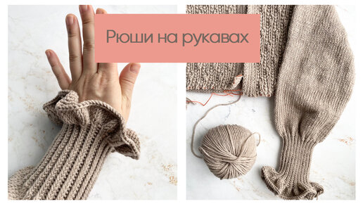 Рюши спицами: вяжу рюши на рукавах, показываю прибавки, рассказываю сколько рядов.