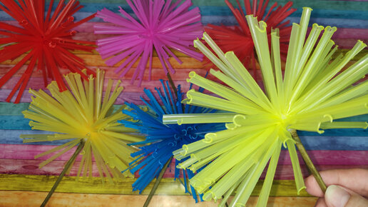 Цветы из пластиковых трубочек / Украшение для сада клумб своими руками / Что сделать из трубочек