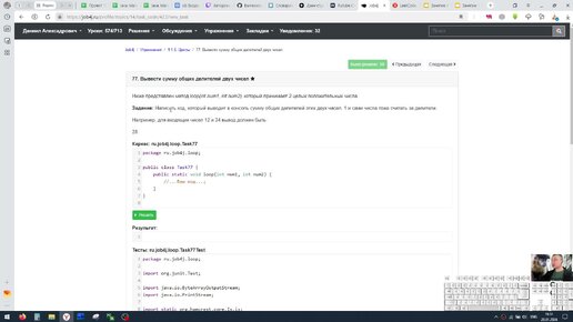Java. Циклы. Вывести сумму общих делителей двух чисел