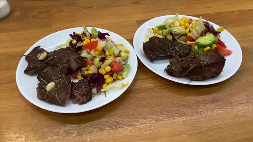 Мой любимый ужин! Нежнейшее, сочное мясо и свежий овощной салат - всего за полчаса! Мужчины попросят добавки! #ужин #мясо #салатза5минут