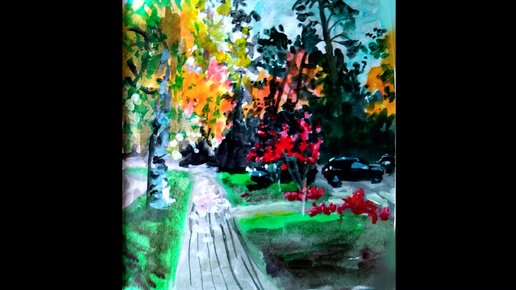 Осенний "пожар" из красок - рисунок акрилом в альбоме поэтапно