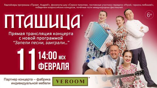 11 февраля в 14:00 мск – Концерт в прямом эфире из г. Кирова ПТАШИЦА / Новая программа!