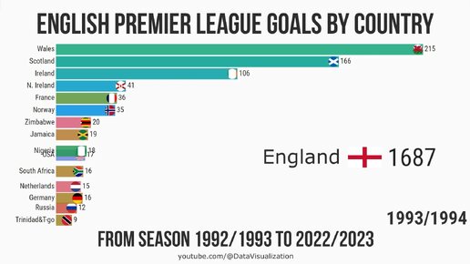 Голы в АПЛ по странам с сезона 1992-93 по 2022-23