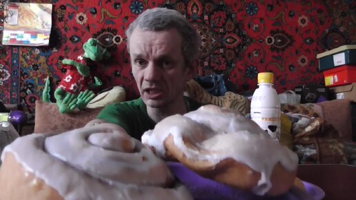 нищий мукбанг две улитки булочки с карицей и два перожка с капустой и бутылочка ряжинки
