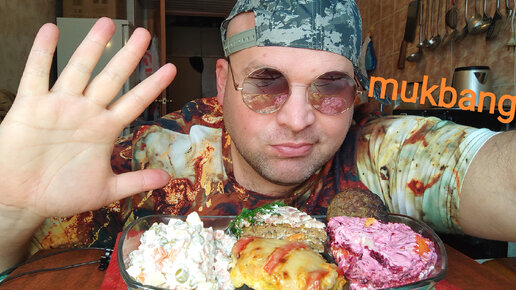 МУКБАНГ Оливье и Под шубой,печеночный пирог и филе курицы/ОБЖОР обеденный