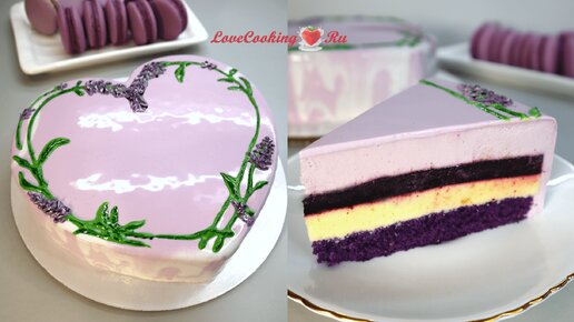 Муссовый лавандовый торт с черникой и лимоном | Муссовый торт-сердце