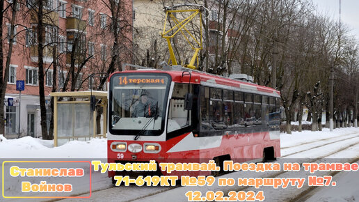 Тульский трамвай. Поездка на трамвае 71-619КТ №59 по маршруту №7. 12.02.2024