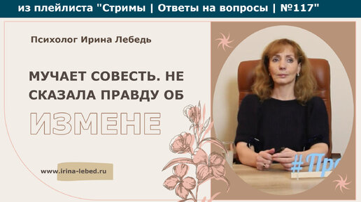 Мучает совесть, что не сказала правду об измене - из плейлиста Стримы | Ответы на вопросы № 117 - психолог Ирина Лебедь