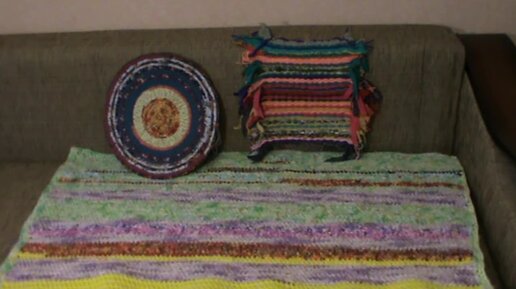 Мои рукодельные процессы 20_ разные коврики разными способами. УТИЛИЗАЦИЯ обрезков тканей и ниток.