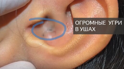 Удаление ОГРОМНЫХ угрей и черных точек из уха