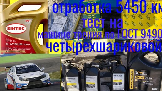 SINTEC platinum 5w30 отработка 5450 км 185 м/ч тест на четырехшариковой машине трения по ГОСТ 9490