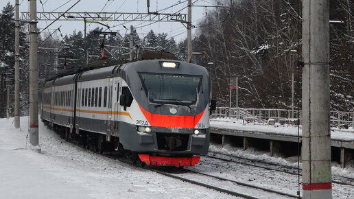 Проходящие поезда на Белорусском направлении зимой. Участок Кубинка - Можайск Московской железной дороги. Февраль 2024 года.