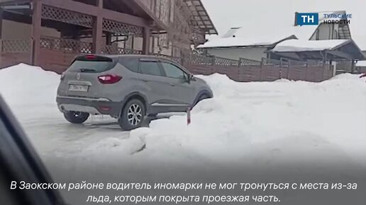 В Заокском районе водитель внедорожника не мог проехать по обледенелой дороге