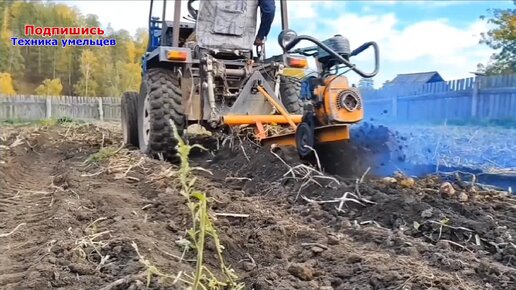 Самодельный трактор капает картофель. Ютуб канал ТЕХНИКА УМЕЛЬЦЕВ, обзоры самодельной техники.