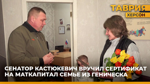 Сенатор Кастюкевич вручил сертификат на маткапитал семье из Геническа