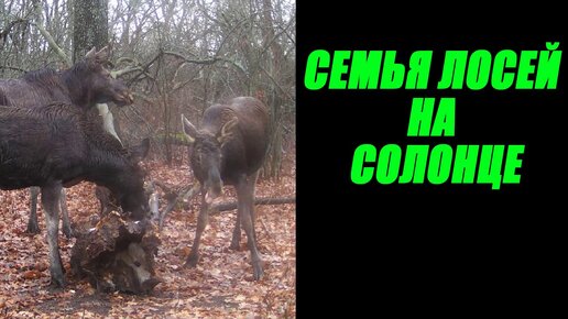 Семья лосей на солонце Фотоловушка В Лесу