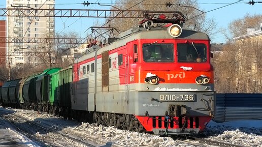 "Последние месяцы работы". ВЛ10-736 с грузовым поездом следует через о.п. Первомайская