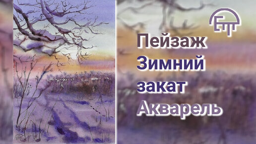 Мастер-класс. Пейзаж. Зимний закат. Акварель