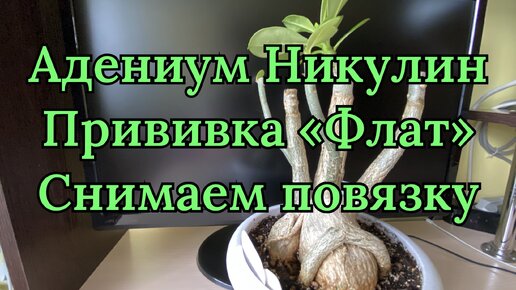 Прививки адениумов. Способ 1-й, прививка «Флат». Как выглядит в приросте. Снимаю повязку. 14 февраля 2024 г.