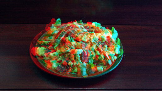 3Dstereo red-cyan Салат с хамоном и авокадо