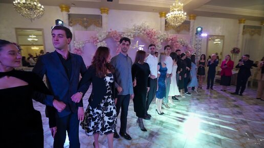 Красивый массовый танец на осетинской свадьбе.Разнообразная красота
