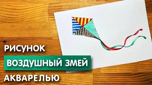 Как нарисовать воздушного змея карандашом и акварелью начинающим | Рисунок поэтапно для детей