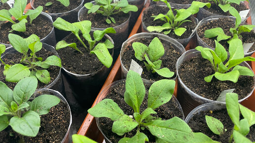 Петунии полтора месяца от всходов. Сеяла в стограммовые стаканчики по одной. Переваливаю в поллитровые стаканы.