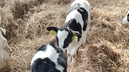 Постелили новую солому.#Телята бегают по соломе#Телята играют в игры на соломе
