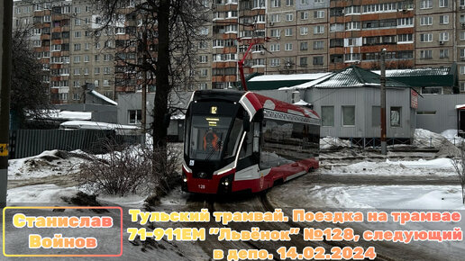 Тульский трамвай. Поездка на трамвае 71-911ЕМ "Львёнок" №128, следующий в депо. 14.02.2024