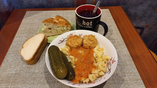 Наедаюсь и наслаждаюсь перед ДИЕТОЙ. Шарлотка с яблоками, макарошки, тефтели, огурчики.