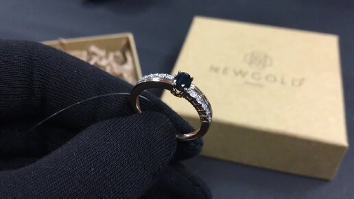 Кольцо 098965 из красного золота 585 пробы с сапфиром и бриллиантами