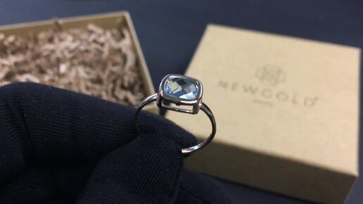 Кольцо 2325 из красного золота 585 пробы с топазом скай