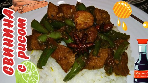 ПРЯНАЯ СВИНИНА СО СТРУЧКОВОЙ ФАСОЛЬЮ И СЛИВОЧНЫМ РИСОМ / Вкусный, сытный и быстрый ужин